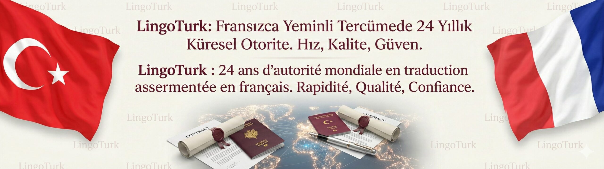 Uluslararası belgelerinizin Fransızca tercümesi, sadece bir dil aktarımı değil; resmi makamlar önünde başarınızın tescilidir. Fransızca konuşulan ülkelerdeki bürokratik titizliği biliyoruz. LingoTurk, 2002'den bu yana, 24 yıllık sektörel birikimiyle vize başvurularından ticari sözleşmelere kadar tüm süreçlerinizi sıfır hata ve en yüksek kabul oranıyla yönetir.